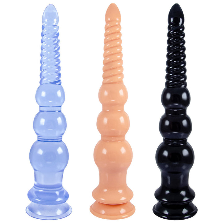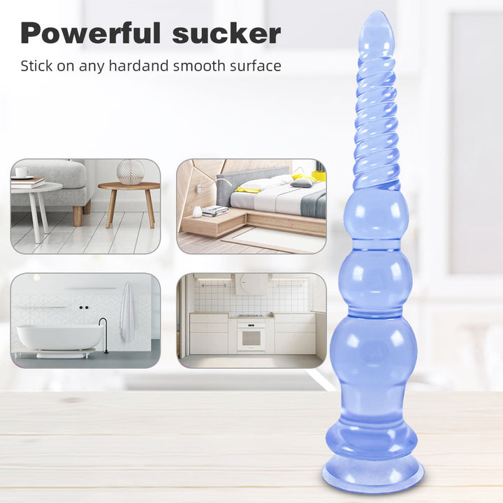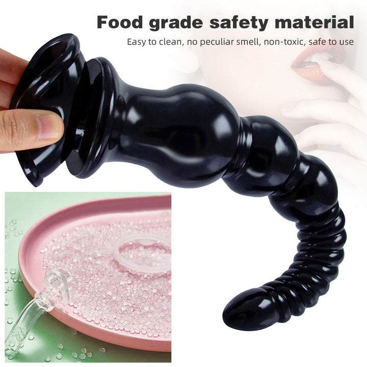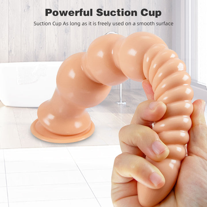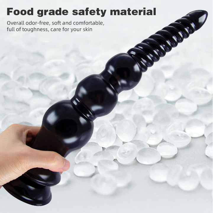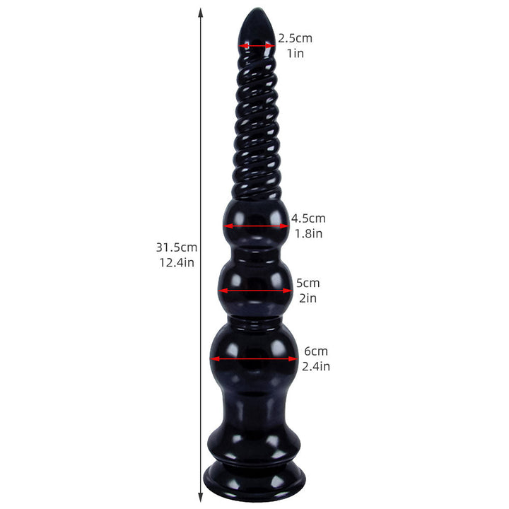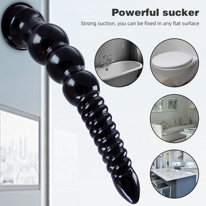 You will be addicted to this 12 inch dildo if you are addicted to the deep immersive! Also with big waved threads at head and three graduated large anal beads bottom. the dildo thrusting will be even wilder!