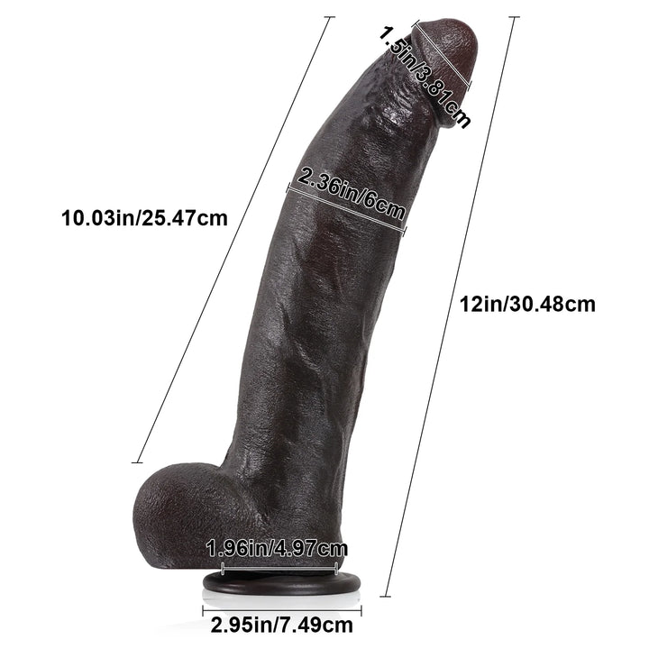 This isn't just a dildo—it's a challenge. a craving. and an obsession. With a jaw-dropping 12-inch dildo and lifelike detailing. this realistic black dildo plug is here to push your boundaries in the most delicious way.