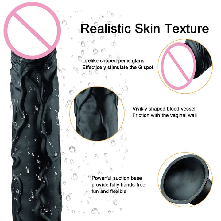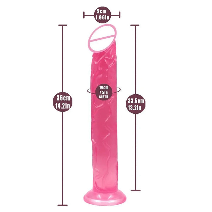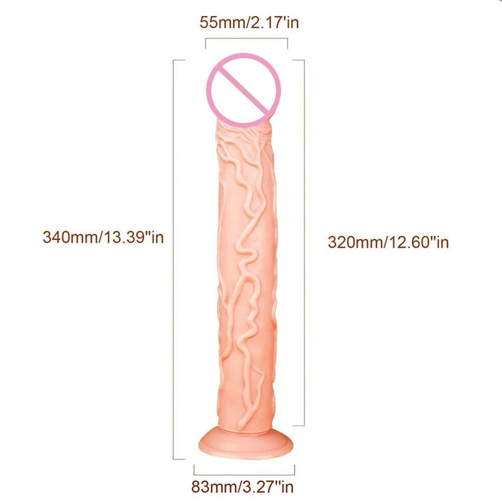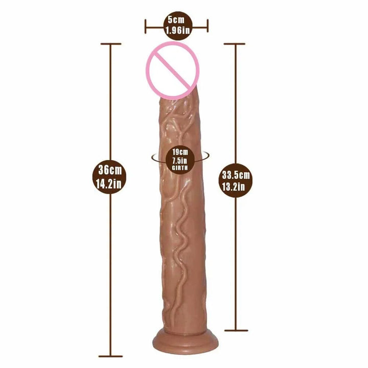 Crafted for intense sex pleasure. this domlust silicone dildo features with a 14 inches long and realitic penis textures. offering an immersive experience for G spot and prostate stimulation. With its soft silicone touching and substantial size. it promises to satisfy even the most adventurous desires. perfect for those seeking mind blowing sensations.