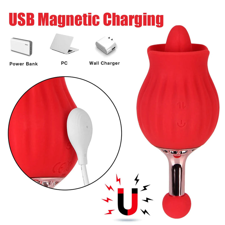 - Features: Rose Shape. Tongue-Like Vibrations. Tail Vagina Stimulation