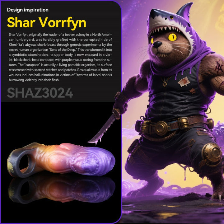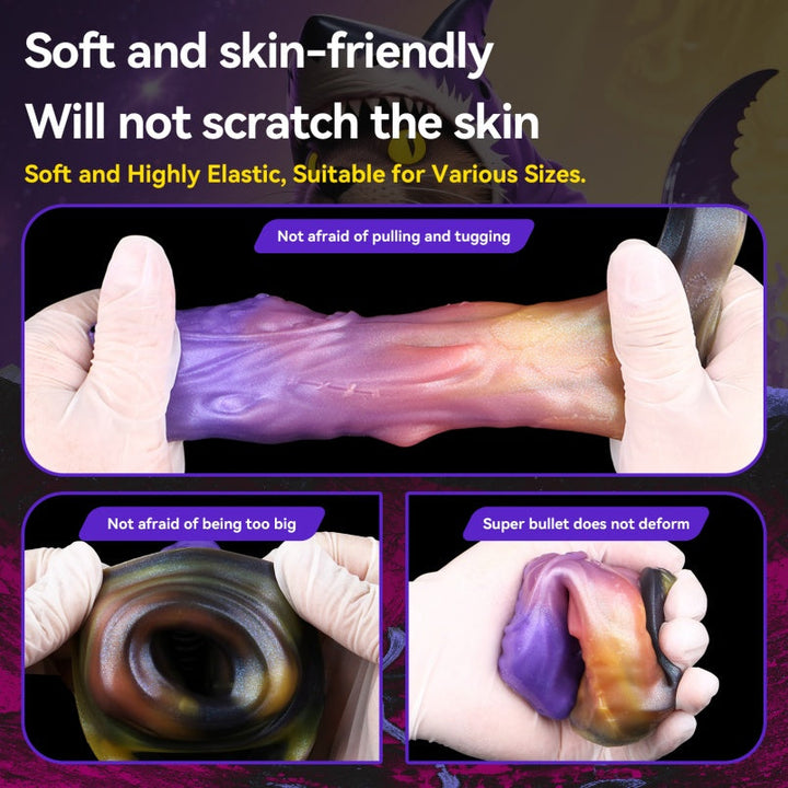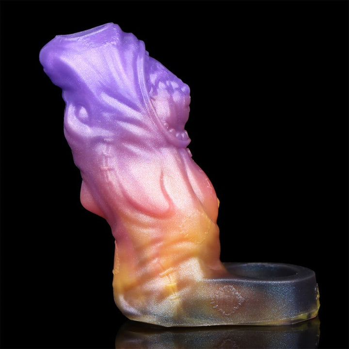 Imagine a night all to yourself. You crave a break from routine—a taste of the unknown. You reach for this purple-orange fantasy cocksleeve. Its alien design feels like a key to another world. As you slide it on. the dual-ring base creates a tight. energizing grip. instantly concentrating arousal at the root.