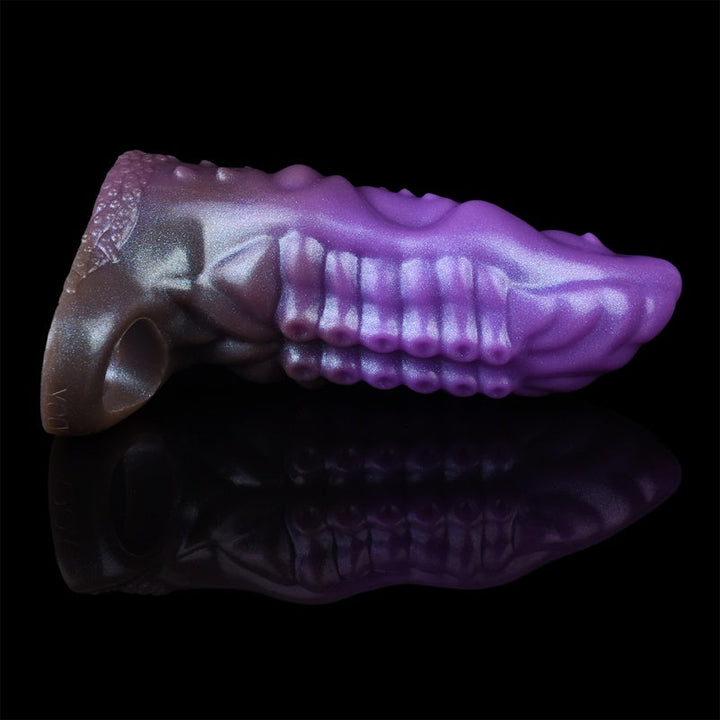The fantasy silicone penissleeve offers ample coverage and grip for immersive pleasure: