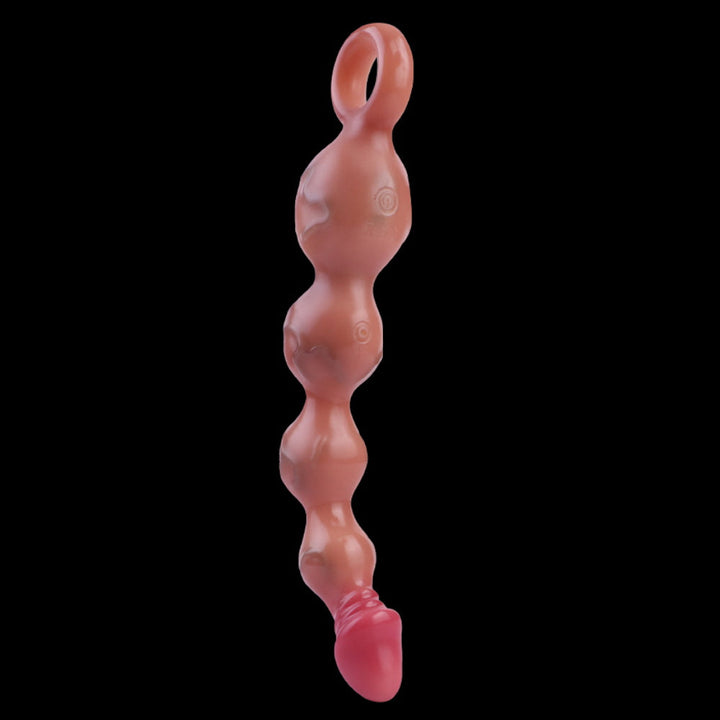 This isn't just a line of beads — it's a flowing stream of pleasure. carefully designed with a narrow tapered tip for easy insertion and graduated balls that increase in size. teasing your body as each one slides in with satisfying pressure.