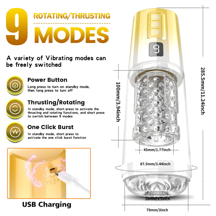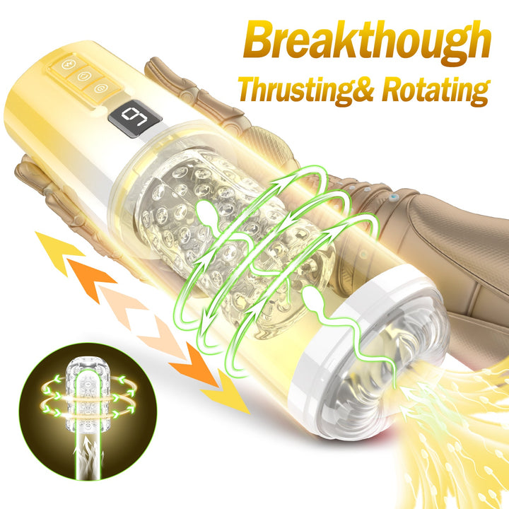The stroker features a powerful thrusting action that mimics the feel of deep penetration. enhancing your pleasure with every movement. The rhythmic strokes deliver intense stimulation for a realistic experience.