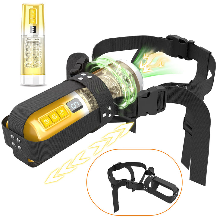 Equipped with a secure strap-on harness. this male masturbator allows you to enjoy hands-free pleasure. The adjustable harness ensures a snug fit. while the sleek and ergonomic design of the stroker makes it easy to wear and operate. It's perfect for solo sessions or partner play. offering versatility and ease of use.