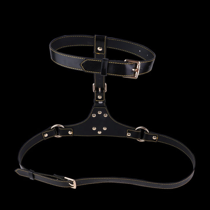 Picture this—your partner kneels before you. fastening the supple leather collar around your neck. The straps tighten across your chest. the pressure building into a delicious restraint.