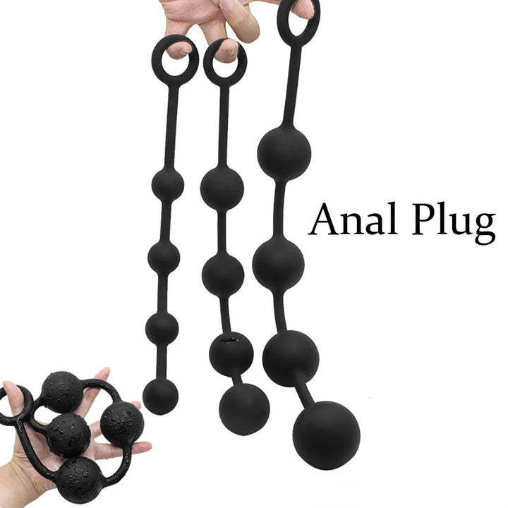 Big Anal Beads Butt Plug - Soft Silicone Black Dildo Sex Toys for Men Women
