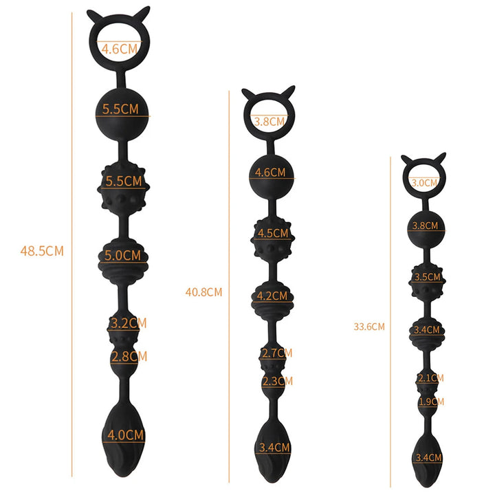 Made from ultra-soft. body-safe silicone. its knotted design offers a progressive stretch with every bump. Each anal bead increases in size. letting you explore at your own pace while training your body to embrace deeper pleasures. Whether you're into slow. sensual play or intense insertion games. this toy delivers waves of pressure that build to an explosive release.