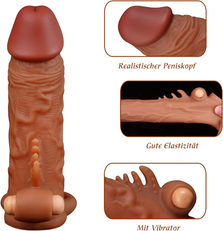 Big Girthy Life Size Cock Sleeve Sex Toys for Men - Vibrating Bullet Realistic Penis Condom