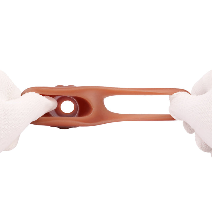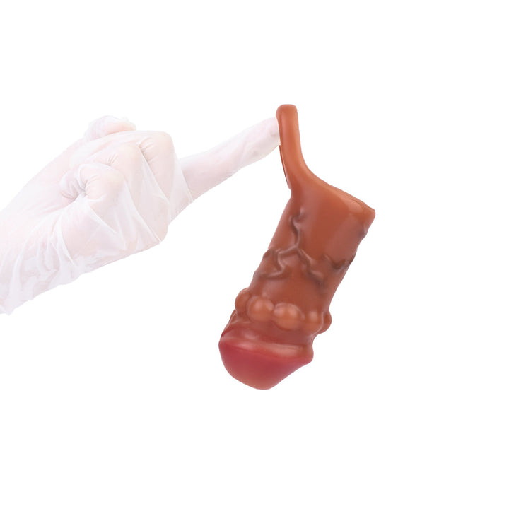 Crafted from premium. body-safe silicone. this penis sleeve is soft. flexible. and hypoallergenic. Its smooth texture ensures comfortable use. while the durable material guarantees long-lasting enjoyment.