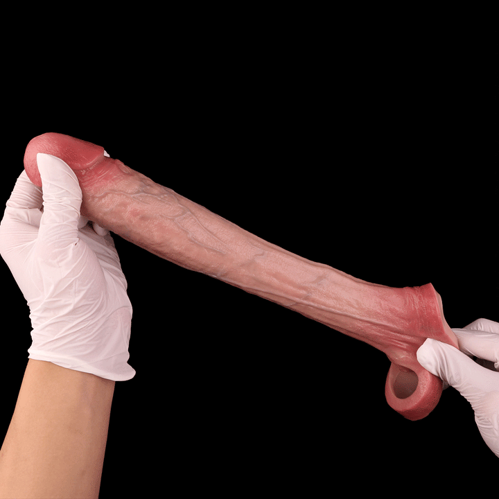 This isn't a quick trick or a flimsy toy—it's this 8.11 inch lifelike Vibrating Cock Sleeve. sculpted in light-skin realism from premium. body-safe silicone. Every vein. curve. and contour is crafted to look and feel like the real thing—only enhanced.