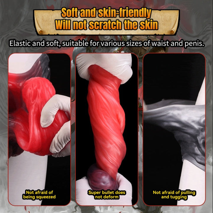 Step into a darker. bolder version of yourself with this crimson-and-black uncut dildo penis sheath. a wearable extender designed for both visual impact and real functional gain. Crafted from ultra-soft silicone and molded in a lifelike uncut form. it slides on comfortably—even if you're not fully erect—and delivers instant enhancement in girth. length. and presence.