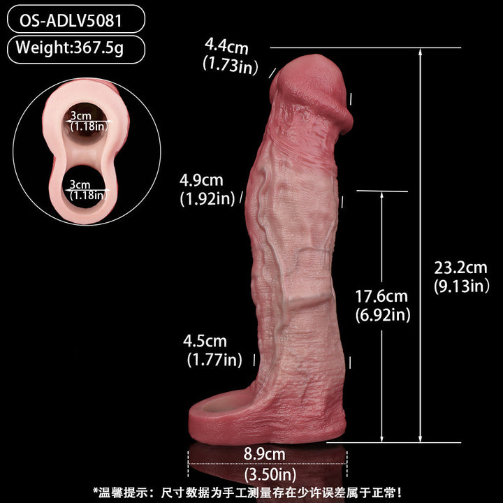 9 inch Vibrating Cock Sleeve - Life Size Huge Penis Sleeve Bareskin Male Extender