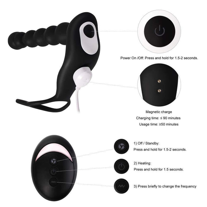 Dual Stimulation with Vibrating Anal Beads and Cock Ring.