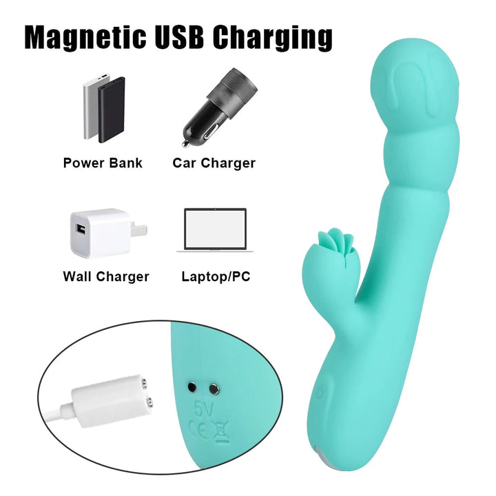 Tongue Clit Clamp Vibrating Dildo - G Spot Clitoral Stimulation Women Sex Toy
