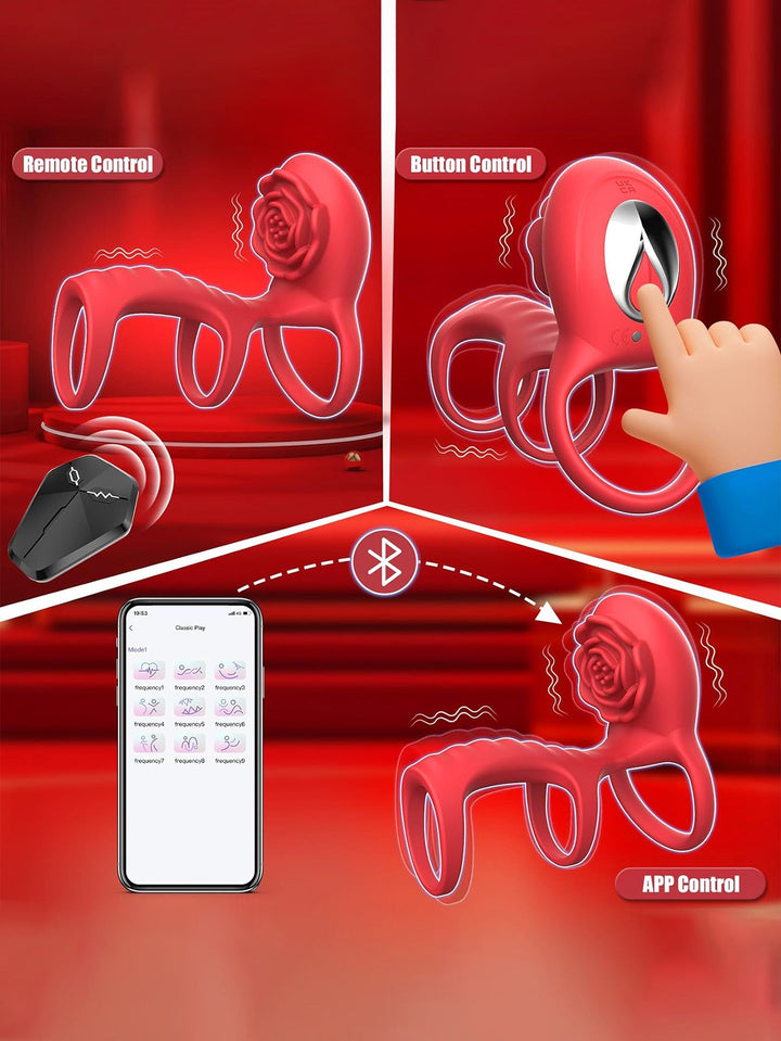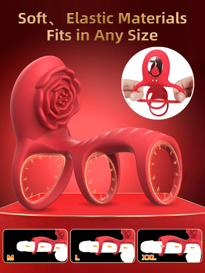 Experience Innovative Triple Vibrating Cockrings Rose Clit Couple Stimulation.