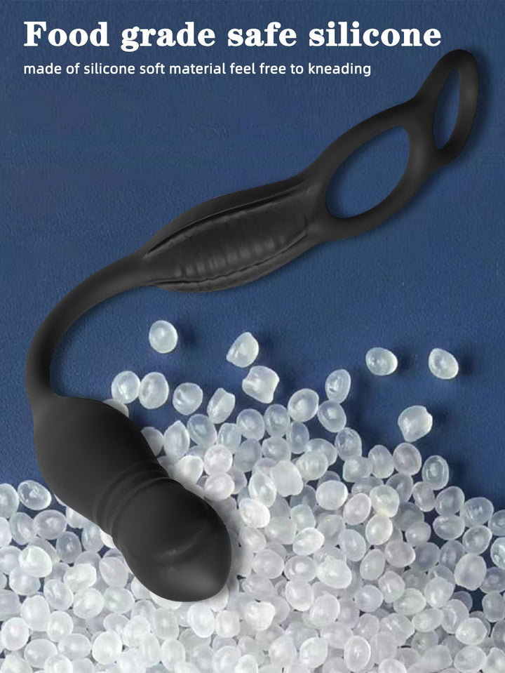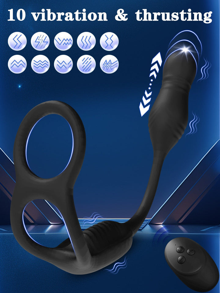 Dual Sensations – Vibrating Cock Ring with Thrusting Anal Dildo for Couples