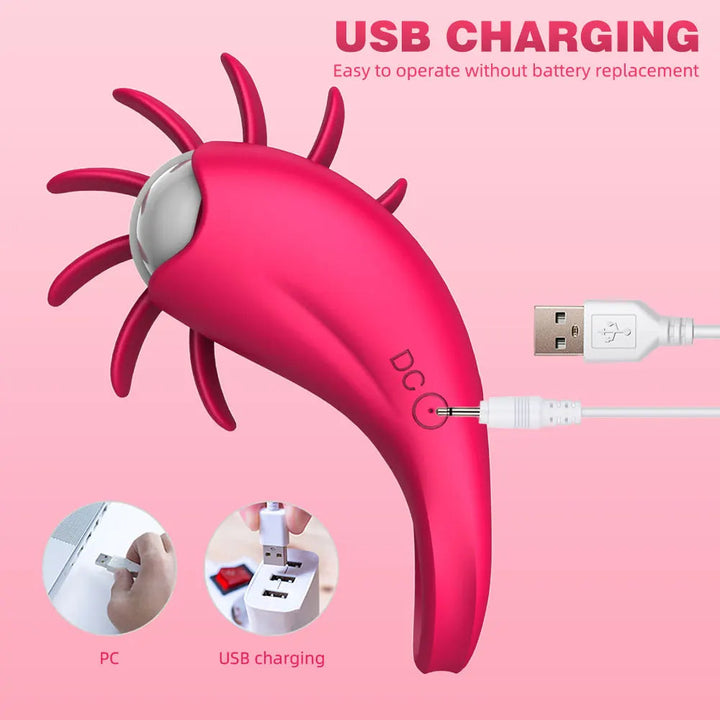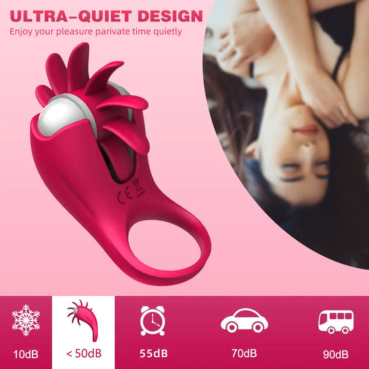 Vibrating Cock Ring Tongue Licking Clit Stimulator - 10 Modes Delayed Ejaculation Enhanced Pleasure