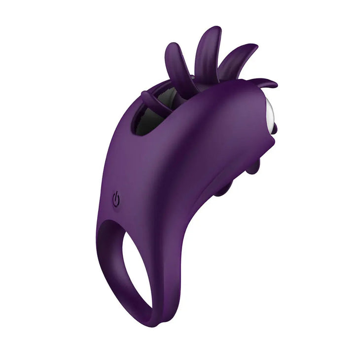 Delve into Domlust 10-Mode Vibrating Cock Ring featuring a tongue-licking clit stimulator.