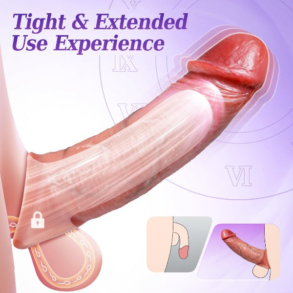 The penis extender cock sleeve captivates with its lifelike design and skin-friendly silicone touch. It vividly reproduces the penis details. designed to provide a natural experience.