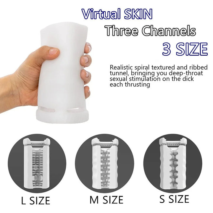 This innovative mens vibrator features three open channels. each meticulously crafted to simulate the sensations of real vaginal penetration.