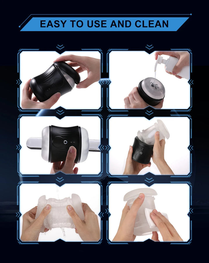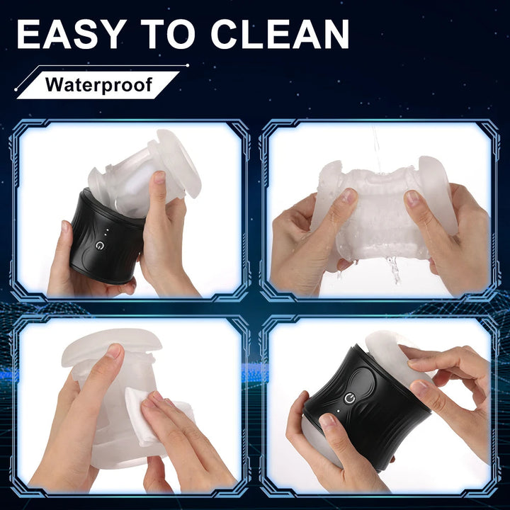 This male masturbator has two removable covers and IPX7 waterproof sleeves. it can be easily cleaned with detergent. just dry about 5 minutes. it will be like new again. Only the size of a water glass. so you can put it anywhere. it will be a good stress relief toy on your travel.