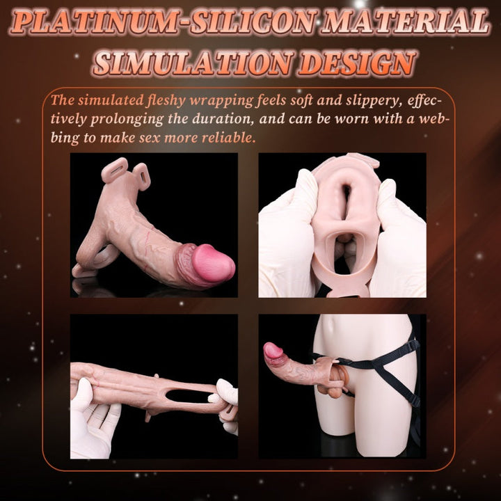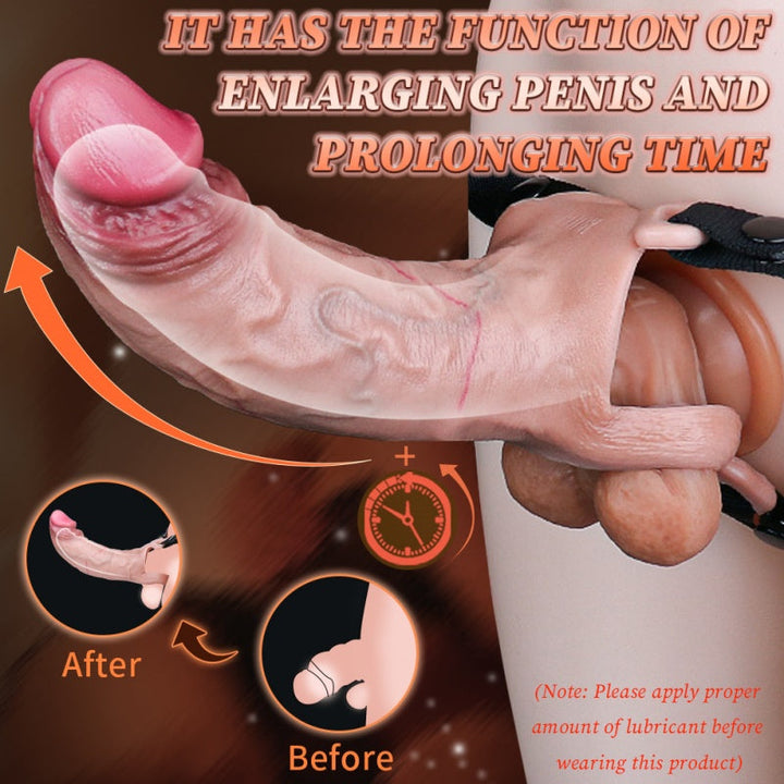 Experience superior performance with the wearable realistic silicone fantasy penis sleeve. This tool is crafted to provide both extended length and enhanced control. helping to address ejaculation concerns while increasing stamina.