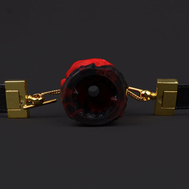 Yukina Fantasy Mouth Gag - Red-Black Rose Silicone Ballgag Leather Kinky Sex Toys